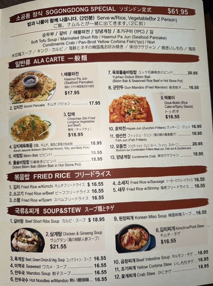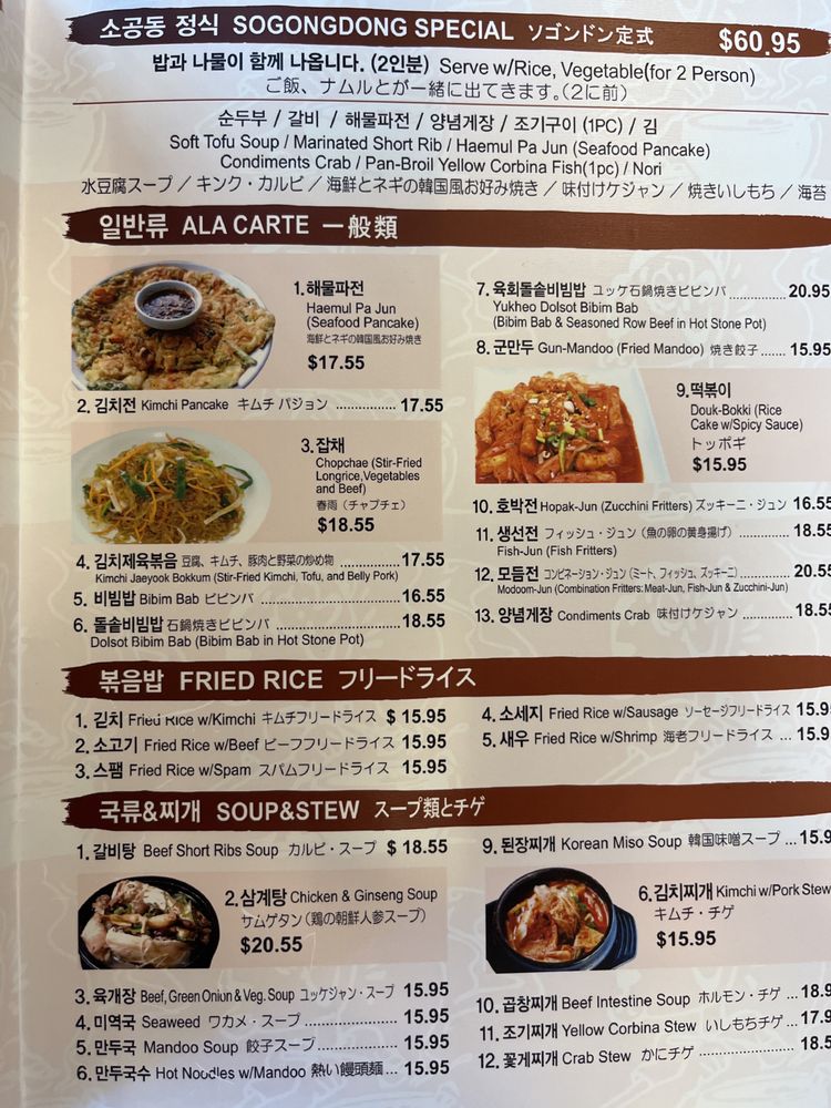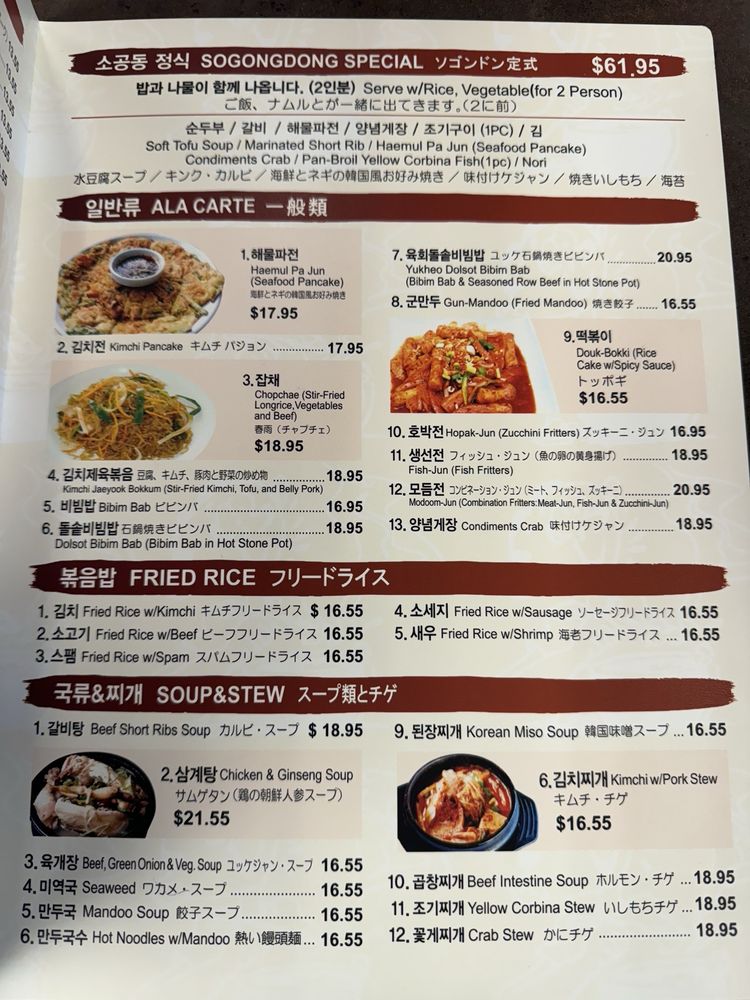 So Gong Dong Restaurant in Honolulu offers a variety of Korean dishes with a focus on Soondubu. Customers praise the quick service, flavorful food, and ample parking. The seafood tofu soup, mandoo, and Soondubu are highly recommended. The restaurant also serves kalbi, BBQ chicken, bulgogi, and meat jun, although some dishes are better than others. With a cozy ambiance and friendly staff, So Gong Dong provides a comfortable dining experience. The menu includes vegan and vegetarian options, making it suitable for everyone. Whether you're looking for a quick lunch or a group dinner, So Gong Dong Restaurant is a great choice for tasty Korean cuisine. Experience the comfort of Soondubu and other classic Korean dishes at this popular spot in Honolulu.